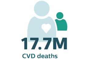 An estimated 17.7 million people died from CVDs in 2017, representing 31% of all global deaths. Of these deaths, an estimated 7.4 million were due to coronary heart disease and 6.7 million were due to stroke .